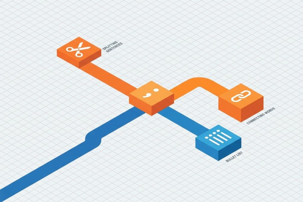 - 日本語として自然かどうかを基準に、文を分けるかつなぐかを判断する